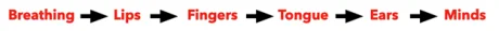 Out of the case, wind musicians need to play long tones in their instruments before anything else. This establishes a set and steady embouchure; engages the lips with the vibrations needed to produce a sound on a mouthpiece and reed; and expands the lungs and open airway in consistent breath intake, output, and control. I recommend these long tones begin in the middle range for all instruments and not be rushed. Make a conscious effort to take in more air each time, expanding the lungs, and providing pitch and dynamic support. Instead of ‘mindlessly’ sustaining a note, have the students focus on their individual tone quality, a consistent centered ensemble pitch, and giving ‘forward direction’ and shape to each note. Finally, consider not measuring the long tones in a steady tempo or with the same number of counts per note. (And PLEASE do not use a metronome over the sound system for this) Instead, conduct the long tones at slow various tempos and in various meters. This will establish eye contact, engage students in responding to the conductor’s gestures, and will develop ensemble cohesiveness and awareness.