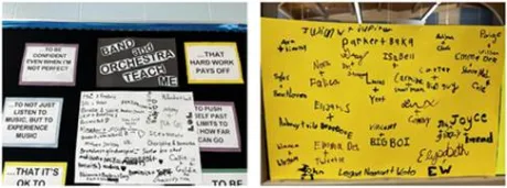Students show their creativity and connection to their instrument by picking a name for it. Everyone signs the poster with their name and their instrument’s name, and it’s displayed in the classroom. This is a fun way for students to take ownership of their instrument and start off their musical journey.